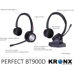 PERFECT BT900ED Słuchawka PERFECT BT900ED ma wytrzymałą konstrukcję dostosowaną do bardzo intensywnej eksploatacji, co oznacza rzadszą wymianę zestawów słuchawkowych i mniej czasu przestojów dla całego zespołu oraz niższe całkowite koszty utrzymania. Dzięki systemowi Bluetooth umożliwia podłączenie do dowolnego telefonu stacjonarnego lub komórkowego czy także do komputera wyposażonego w system Bluetooth. Najważniejszą funkcją zestawu słuchawkowego dla centrum kontaktowego czy biura jest eliminacja odgłosów otoczenia z głośnego środowiska i zapewnienie, że klient wyraźnie usłyszy głos rozmówcy. Mikrofon ze wzmocnionym wyciszaniem szumów zapewnia najwyższy stopień wyciszenia hałasu otoczenia w każdym z naszych zestawów słuchawkowych. Idealnie dopasowanie dzięki lekkiej, ergonomicznie zaprojektowanej konstrukcji, regulowanemu pałąkowi nagłownemu i wysięgnikowi mikrofonu.