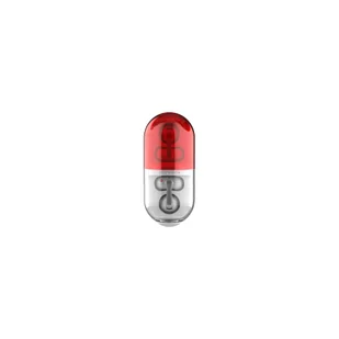 Konstrukcja klipsa na ucho Pill wykorzystuje hybrydę płynnego silikonu i stopu tytanu z pamięcią kształtu. Dzięki temu jest miękki w dotyku i ma wytrzymałą strukturę wewnętrzną. Utrzymuje swój kształt, pasuje do większości uszu i może być przenoszony w kieszeni lub torbie.