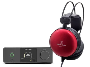 Zestaw składający się ze wzmacniacza słuchawkowego Rotel DX-3 oraz słuchawek Audio-Technica ATH-A1000Z