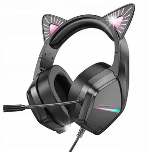 Słuchawki nauszne BOROFONE GAMING PRZEWODOWE KOCIE USZY LED USB +JACK 3.5mm
