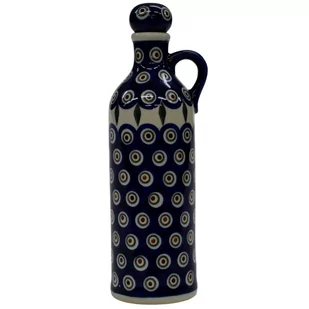 0,6 l Opis: Butelka ceramiczna z uchem oraz z korkiem ceramicznym, bolesławiecka karafka - oryginalny produkt ceramiki bolesławieckiej, zachwycająca designem i funkcjonalnością o pojemności 600 ml. Karafka (butelka) to element wyposażenia kuchennego, który powinien się znaleźć w każdej zastawie stołowej, w każdym gospodarstwie domowym. Butelki ceramiczne stają się rewelacyjnymi naczyniami do przechowywania oliwy z oliwek, która jest zdrowym dodatkiem do sałat, sałatek i innych potraw. Wraz ze stylowo dopasowanymi kieliszkami do wina połączonymi ze szkłem lub ceramicznymi kieliszkami, można skomponować kunsztowne zestawy do podawania trunków.