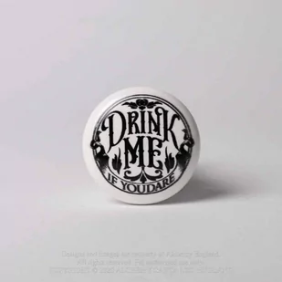 Do you Dare Drink the contents of the bottle? This 'Drink me If You Dare' Bottle Stopper just might make you think twice! A wonderfully unique bottle stopper for your favourite tipple or perhaps a gift for a loved one. Either way this decorative piece will be the talk of your dinner table. A Bottle stopper collection adorned with original Alchemy art work - 9 to collect! These bottle stoppers form part of the exciting gift and home collection by Alchemy! Korek do butelki firmy Alchemy Gothic. Wymiary: 4cm x 4cm x 6cm Wykonany z ceramiki i korka.