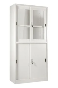 Nowoczesna konstrukcja Wysoka jakość wykonania Innowacyjne rozwiązanie kolorystyczne Bardzo funkcjonalny Idealne uzupełnienie każdego domu, biura Szafka wykonana z metalu o grubości 0,5 mm (przed lakierowaniem) Górne drzwi wyposażone w szklane fronty Łatwe otwieranie i zamykanie przez drzwi przesuwne Regulowana półka Maksymalna nośność półki 60 kg Drzwi szafki zamykane na klucz (w komplecie 2 klucze) Instrukcja montażu w przesyłce Solidne wykonanie, trwałość na lata Meble produkowane w Polsce Wymiary: Wysokość: 180 cm Szerokość: 85 cm Głębokość: 39 cm Dodatkowe informacje: Meble należy czyścić za pomocą delikatnej ściereczki.