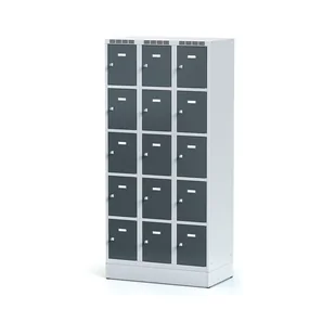Szafka skrytkowa S6 na cokole, 15 schowków, 1920 x 900 x 500 mm, zamek obrotowy, drzwi ciemnoszare