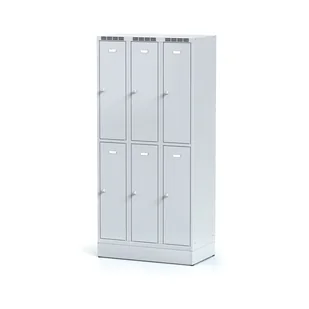 Metalowa szafka skrytkowa na cokole, 6 schowków, 1920 x 900 x 500 mm, zamek obrotowy, drzwi szare