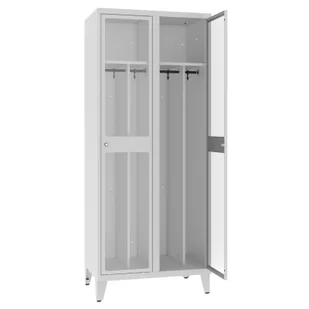 Podwójna szafa z przegrodą ubraniową MSUM 421 na nogach i drzwiami pleksi