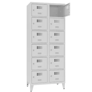 12 Kolor: Jasny szary- RAL 7035 ✅WNĘTRZE SZAFY: Szafa została wyposażona w wizytownik do samodzielnego przyklejenia. Zamknięcie zamkiem kluczowym. Perforacja WEMO zapewnia doskonałą wentylację i nowoczesny wygląd produktu. ✅DOBIERZ DASZEK: