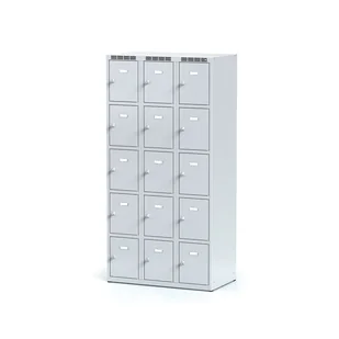 Szafka skrytkowa S6, 15 schowków, 1800 x 900 x 500 mm, zamek cylindryczny, drzwi szare