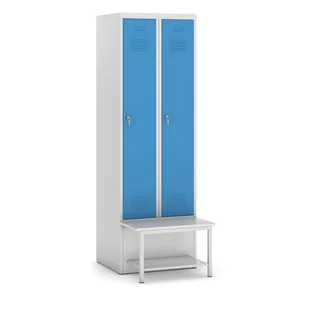 Szafka ubraniowa obniżona z ławką, drzwi niebieskie, zamek cylindryczny
