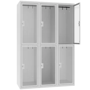 Szeroka szafka metalowa z 6 schowkami dla pracowników MSUS 432 drzwi pleksi