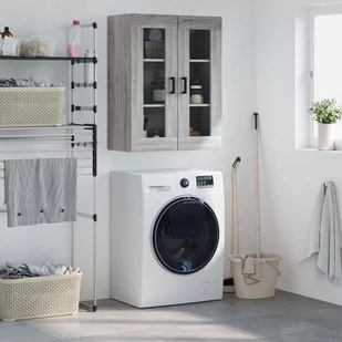 Kolor: szary dąb sonoma Materiał: materiał drewnopochodny, szkło Wymiary: 69,5 x 34 x 90 cm (szer. x gł. x wys.) Wymagany montaż: tak