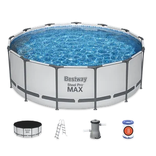 Kompatybilność z różnymi systemami filtrującymi, takimi jak Flowclear™, zapewnia Ci czystość wody przez cały czas użytkowania basenu. W zestawie znajdziesz wszystko, czego potrzebujesz do rozpoczęcia sezonu kąpielowego: jeden basen, pompa filtrująca, drabina ułatwiająca wejście i wyjście z wody, przykrycie basenu na noc oraz łatka naprawcza na wypadek drobnych uszkodzeń. Daj sobie luksus i komfort, który zasługujesz, i wprowadź do swojego życia basen ogrodowy na stelażu STEEL PRO MAX. Oaza spokoju i relaksu czeka na Ciebie!Cechy produktuPojemność wodna (90%):