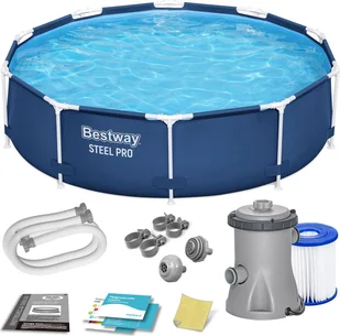 - Basen stelażowy 305 x 76 cm - Pompa filtrująca - Filtr pompy - Sitka - Węże do pompy - Instrukcja obsługi - Zaciski - Łatka naprawcza - Przewodnik do pobrania Najwyższej jakości konstrukcja: