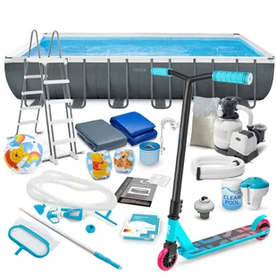 Basen ogrodowy stelażowy 732 x 366 x 132 cm ★★★★★ Zestaw 22w1 Intex 26364 ★★★★★ MEGA ZESTAW ★ Jeśli potrzebujesz dużego, niezawodnego basenu - to idealny wybór dla Ciebie! ★ Gotowy zestaw z wyposażeniem – nie musisz sam szukać wszystkich elementów. ★ Kupując basen INTEX z dedykowanymi akcesoriami masz pewność, że otrzymasz najwyższą jakość i wszystko będzie do siebie pasować. ★ Wyjątkowy prezent: hulajnoga Soke Go! w zestawie. ZAWARTOŚĆ ZESTAWU Basen stelażowy 732 x 366 x 132 cm Pompa filtrująca Piasek filtracyjny Chemia - Multitabletki 25x20g Pływak Termometr basenowy Bezpieczna drabinka Pokrywa basenowa Mata pod basen Rękawki do pływania Piłka plażowa Skimmer Sitka pompy Przyłącza do pompy Węże do pompy Łatka naprawcza Instrukcja w języku polskim Kij do zestawu czyszczącego Wymienne końcówki zestawu czyszczącego (siatka, szczotka, ściągaczka) Odkurzacz basenowy GRATIS: