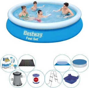 Montaż basenu w mgnieniu oka? Żaden problem z tym basenem Bestway! To bardzo proste: wybierz płaską powierzchnię, nadmuchaj górny pierścień i odkręć kran! Basen będzie się podnosił, im bardziej będzie wypełniony wodą. Dzięki wysokowydajnej wykładzinie Tritech basen jest bardzo wytrzymały, a ryzyko jego uszkodzenia jest niezwykle niskie. Idealne lato zaczyna się od basenu Fast Set od Bestway! Dzięki temu zestawowi masz wszystko, czego potrzebujesz do optymalnej konserwacji basenu w jednym pakiecie w domu.