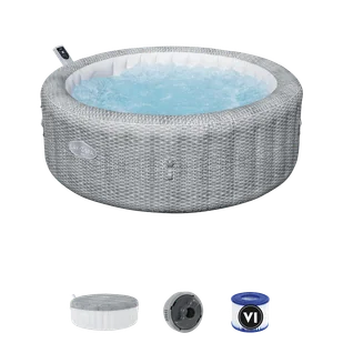 Bestway® LAY-Z-SPA® energooszczędna wanna z hydromasażem Bali AirJet™ ze sterowaniem za pomocą aplikacji + zintegrowana pompa UltraFit™, dla 6 osób Ø 196 x 71 cm, rattanowy wygląd (jasnoszary)