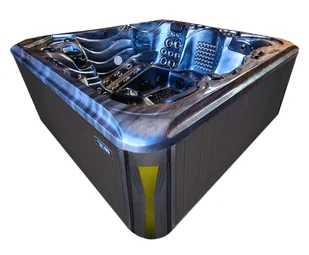 wymiary: 220x220 cm, wysokość: 90 cm, 5-osobowa, kolor akrylu: niebieska fala oceanu, kolor obudowy: antracyt.