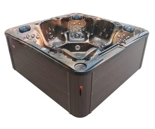 wymiary: 230x230 cm, wysokość: 97 cm, 5-osobowa, kolor akrylu: magma gold, kolor obudowy: kawa.