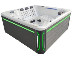 wymiary: 220x220 cm, wysokość: 90 cm, 6-osobowa, kolor akrylu: cappuccino, kolor obudowy: szary.