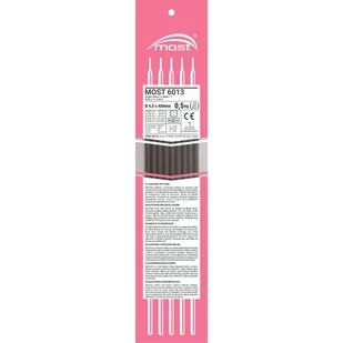 Elektroda Most 6013, śr. 4,0 mm, 0,5 kg. Elektroda rutylowa z domieszką celulozy do spawania stali niestopowych. Doskonałe własności spawalnicze. Łuk jest stabilny, spawanie z minimalną ilością odprysków.
