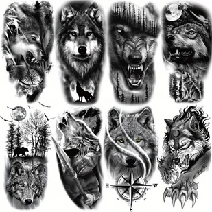 TEMU Zestaw 8 Realistycznych Tymczasowych Tatuaży z Głową Wilka - Wodoodporne, Duże Naklejki na Półramię dla Mężczyzn i Kobiet
