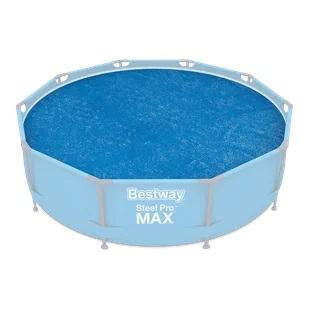 Pokrywa solarna do basenu Bestway 3. 05m Zatrzymaj wodę i ciepło w basenie, a zanieczyszczenia, liście i śmieci z dala od basenu dzięki tej solarnej pokrywie basenowej Flowclear . Solarne osłony basenów naziemnych tworzą w basenie efekt cieplarniany. Pokrywy solarne zapobiegają również parowaniu wody spowodowanemu suchymi wiatrami lub utracie wolnego chloru spowodowanej promieniami UV. Te pokrywy są zaprojektowane tak, aby zatrzymać wodę i ciepło, ale nie dopuścić do zanieczyszczenia.