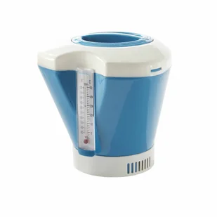 Pływający dozownik chemii basenowej Naterial. Posiada pojemność na 5 tabletek chloru lub bromu o wadze 200 gramów każda oraz możliwość regulacji poziomu dawkowania. Wyposażony jest także w termometr, który wyświetla wartości w ºC i ºF.