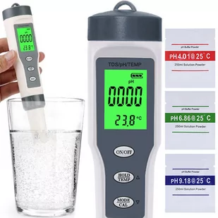 Urządzenie ma kompaktowy rozmiar dlatego łatwo je zastosować w różnych warunkach. Dokładność pomiaru w granicach 0,01 i czas pomiaru ok 1 sekundy ułatwiają korzystanie z przyrządu. POMIAR TEMPERATURY, ATC I AUTOMATYCZNE WYŁĄCZANIENajnowszy miernik do pomiaru odczynu wody wyposażony został w dodatkowe udogodnienia, które ułatwią korzystanie z urządzenia. Miernik posiada bardzo czuły termometr - jego wskazania ukazują się na dużym, czytelnym, podświetlanym wyświetlaczu. System ATC (Automatic Temperature Compensation) gwarantuje, że pomiar dokonany przy pomocy urządzenia nie zostania zafałszowany poprzez zmianę temperaturę cieczy.