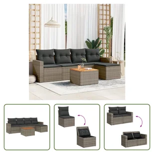 6-częściowy zestaw sof ogrodowych z poduszkami z szarego polirattanuTen zestaw sof ogrodowych jest idealnym dodatkiem do ogrodu, patio lub dziedzińca. Zapewnia wygodne i zachęcające miejsce do rozmów z rodziną i przyjaciółmi lub po prostu relaksu i cieszenia się życiem na świeżym powietrzu. Wytrzymały materiał: rattan PE, znany również jako polirattan, to wytrzymały, łatwy w pielęgnacji materiał syntetyczny o wyglądzie naturalnego rattanu. Charakteryzuje się niską wagą i jest łatwy w czyszczeniu.