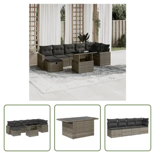 8-częściowy zestaw sof ogrodowych z poduszkami z szarego polirattanuTen zestaw sof ogrodowych jest idealnym dodatkiem do ogrodu, patio lub dziedzińca. Zapewnia wygodne i zachęcające miejsce do rozmów z rodziną i przyjaciółmi lub po prostu relaksu i cieszenia się życiem na świeżym powietrzu. Wytrzymały materiał: rattan PE, znany również jako polirattan, to wytrzymały, łatwy w pielęgnacji materiał syntetyczny o wyglądzie naturalnego rattanu. Charakteryzuje się niską wagą i jest łatwy w czyszczeniu.