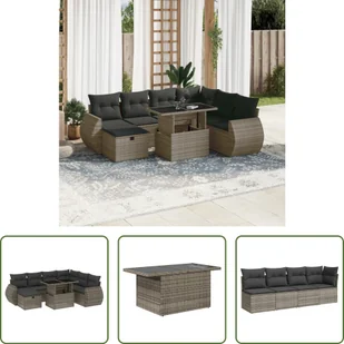 8-częściowy zestaw sof ogrodowych z poduszkami z szarego polirattanuTen zestaw sof ogrodowych jest idealnym dodatkiem do ogrodu, patio lub dziedzińca. Zapewnia wygodne i zachęcające miejsce do rozmów z rodziną i przyjaciółmi lub po prostu relaksu i cieszenia się życiem na świeżym powietrzu. Wytrzymały materiał: rattan PE, znany również jako polirattan, to wytrzymały, łatwy w pielęgnacji materiał syntetyczny o wyglądzie naturalnego rattanu. Charakteryzuje się niską wagą i jest łatwy w czyszczeniu.