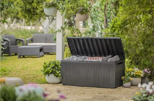 Dodatkowym atutem skrzyni Keter bez wątpienia jest to, że pomieści 305L. Możesz w niej schować dosłownie wszystko: narzędzia ogrodowe, akcesoria do grilla, zabawki dla dzieci, poduszki od mebli ogrodowych i wiele innych. Szczelna, łatwa w obsłudze pokrywa dodatkowo zabezpieczy przechowywane akcesoria. Skrzynia Keter Curver jest bardzo prosta w montażu i nie wymaga specjalnych kwalifikacji ani narzędzi. Schowek bez problemu zmieścisz nawet na swoim balkonie!