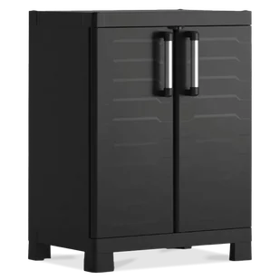 Szafa Detroit Low, czarna (963510) od marki KETER. Zawiera 2 półki o nośności 15 kg. Blokada bezpieczeństwa SLO (Security Lock Off). Do warsztatów, garaży, ogrodów. Wymiary opakowania to 80 × 20 × 46 cm.