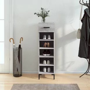 Utrzymuj porządek i stwórz przyjemną przestrzeń za sprawą eleganckiej szafki na obuwie! Trwały materiał: tworzywo drewnopochodne ma wyjątkową jakość i gładką powierzchnię, a do tego charakteryzuje się wytrzymałością, stabilnością i odpornością na wilgoć. Sporo miejsca: ta szafka na buty ma 1 szufladę i 5 otwartych półek, dając mnóstwo miejsca do przechowywania każdego rodzaju obuwia. Stabilny blat: