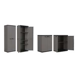 Zestaw szaf gospodarczych KETER/KIS PIU SET - Nie radzisz sobie z bałaganem panującym w przydomowym warsztacie, pralni czy garażu? Zestaw szaf gospodarczych KETER/KIS PIU SET to idealne rozwiązanie Twojego problemu z utrzymaniem porządku. Szafy wykonane zostały z najwyższej jakości tworzywa sztucznego odpornego na warunki atmosferyczne oraz promieniowanie UV. Seria PIU zaskakuje swoim minimalistycznym i eleganckim wyglądem oraz uniwersalnym zestawieniem kolorystycznym, dzięki czemu doskonale wkomponuje się w wystrój każdego pomieszczenia. Obie szafy posiadają ergonomiczne uchwyty, które dodatkowo posiadają specjalne otwory umożliwiające zamykanie drzwiczek na kłódkę. Szafy PIU przystosowane są do samodzielnego montażu - bez konieczności użycia dodatkowych narzędzi!Wysoka szafa PIU HIGH CABINET wyposażona została aż w 3 ładowne półki - maksymalny udźwig na każdą z nich wynosi aż 15 kg.