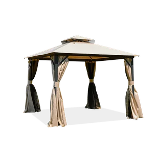Ten pawilon ogrodowy to nie tylko ochrona przed słońcem czy lekkim deszczem - to miejsce, które definiuje nowe standardy komfortu w ogrodzie. Idealnie pasuje jako osłona dla Twojego zestawu mebli wypoczynkowych, zapewniając intymność i wygodę podczas relaksu na świeżym powietrzu. Solidny aluminiowy stelaż!Niezależnie od warunków pogodowych, pozostań zawsze w centrum wygody. Dach wykonany z wysokiej jakości, wodoodpornej tkaniny zapewnia niezawodną ochronę przed opadami, a dodatkowy wywietrznik pozwala na swobodny przepływ powietrza, eliminując uczucie duszności nawet w najgorętsze dni. Zmierz się z atakami komarów i innych uciążliwych owadów dzięki wbudowanej moskitierze, która obejmuje całą powierzchnię boczną pawilonu.