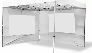 Komplet dwóch ścian do pawilonu PROFI 3 x 3 m - biały. Ścianki łatwe w montażu za pomocą pasków na rzepy lub haczyków. Materiał wodoszczelny oddychający - poliester PA powlekany, chroniący przed wiatrem.
