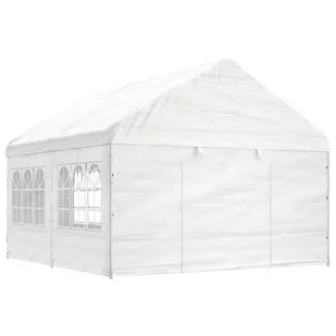 Kolor: biały Materiał: PE (polietylen), galwanizowana stal Wymiary całkowite: 4,46 x 4,08 x 3,22 m (szer. x gł. x wys.) Wysokość boku: 2 m Zawiera 6 ścianek i przezroczyste okna Dwa wejścia zamykane na zamki błyskawiczne Wymagany montaż: tak