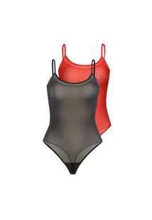 -2 Pak Zmysłowe, prześwitujące elastyczne damskie body Sophi w kolorze czarnym i czerwonym - Z tyłu na plecach i na dekoldzie są mocniej wycięte -Body posiad...