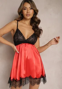 Czarno-Czerwona Koszula Nocna na Ramiączkach z Wstawkami z Koronki Amarylia