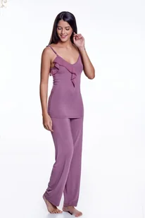 OEKO-TEX Standard 100, Recycled 100, TSE Design: Góra na ramiączkach z ozdobieniem, długie wygodne spodnie Właściwości: Antybakteryjne, hipoalergiczne, odprowadzające wilgoć Opakowanie: W pudełku prezentowym – idealne na prezent Kolor: Jagodowy Elegancka piżama LINDA łączy luksus i wygodę, doskonała na spokojny sen i domowy relaks.