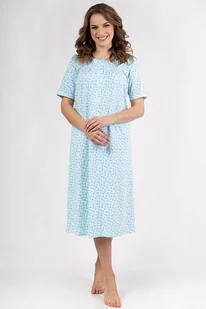 Damska koszula nocna Anitta ma piękny kwiatowy wzór, wygodny krój i dekolt zapinany na guziki. Koszulka wykonana jest z wysokiej jakości 100% bawełny. Ma krótkie rękawy i okrągły dekolt, który jest ozdobnie przeszyty. Można ją rozpiąć za pomocą 5 guzików. Długość ok.