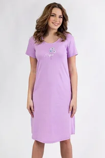 Koszula nocna Filomena jest wykonana w 100% z bawełny, ma dłuższą długość i jest ozdobiona kwiatowym nadrukiem. Koszulka wykonana jest w 100% z bawełny. Ma krótkie rękawy i okrągły dekolt. Dekolt jest ozdobnie zaprojektowany. Koszulka ma jasnofioletowy kolor, z przodu nadruk z napisem Magic i obrazkiem kwiatu.