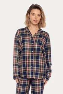 Kraciasty wzór w odcieniach granatu, różu i oliwki nadaje nowoczesny i elegancki wygląd. Piżama dostarczana jest w ozdobnym pudełku, dzięki czemu sprawdzi się także jako prezent.
