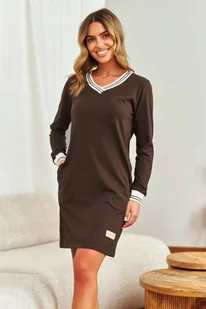 Doctor Nap koszula nocna z długim rękawem TM.4534.BROWNIE w sportowym stylu to idealne połączenie wygody i casualowej elegancji. Wykonana z miękkiej, oddychającej dzianiny bawełnianej, zapewnia pełen komfort noszenia - doskonale sprawdzi się zarówno jako komfortowa koszula nocna, jak i stylowy strój homewear.