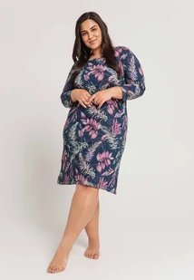 Koszula nocna Vivian wykonana jest z wysokogatunkowej, 100% bawełny. Koszula jest w kolorze granatowym w kolorowe liście. Posiada rękaw długości 3/4 Skład: 1...