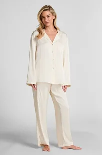 Eleganckie marzenia zaczynają się tutaj. Te satynowe spodnie piżamowe w prążki dodadzą twojemu luzowi swobodnego wyglądu podczas odpoczynku dzięki jedwabistej miękkości, delikatnym lamówkom i luźnemu krojowi, który porusza się razem z tobą. Elastyczny pas zapewnia wygodę, a kieszenie boczne dodają odrobinę luzu. Idealne do wypoczynku i po prostu, aby czuć się wspaniale w domu. Luźny fason Długie spodnie Elastyczna talia Zapięcie w postaci wiązania