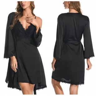 Komplet szlafrok damski satynowy koszulka - L