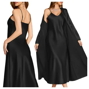 Luksusowy komplet nocny – satynowa koszulka na ramiączkach i szlafrok dla eleganckiej kobiety Elegancki i wygodny komplet składający się z długiej koszuli no...