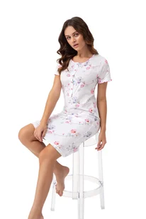 Koszula nocna damska LUNA kod 42 rozpinana w kwiaty [M]
